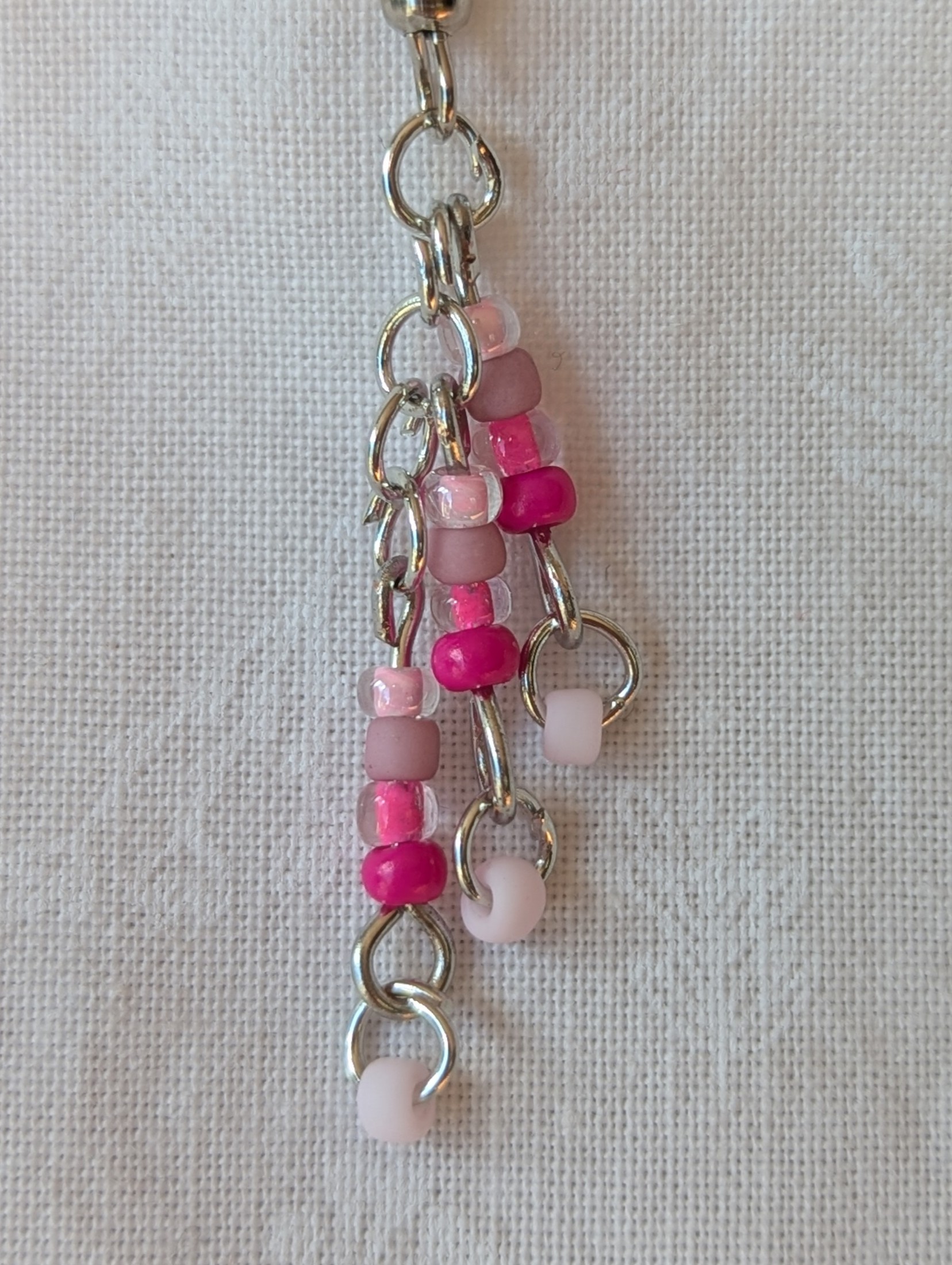 These Pink Beaded Earrings feature a graceful cascade of shimmering pink tones that capture both elegance and playfulness. Each earring showcases 15 glass beads in five distinct shades of pink—from soft blush and rose quartz to vivid fuchsia and deep magenta—arranged to create gentle movement and depth.